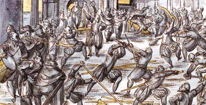 Open floor sparring, individual coaching time, review and practical application of last weeks class topics, and special topic classes. Saturdays are a really good time to work on individual improvement and practice of topics that YOU want to go over. If there are several people that want to work on the same thing, Gilding is more than happy to lead smaller classes. We can/will also be using part of the day to talk about Sword and Buckler instruction that includes techniques against mixed weapons. (Rapier, sidesword, longsword, etc.)